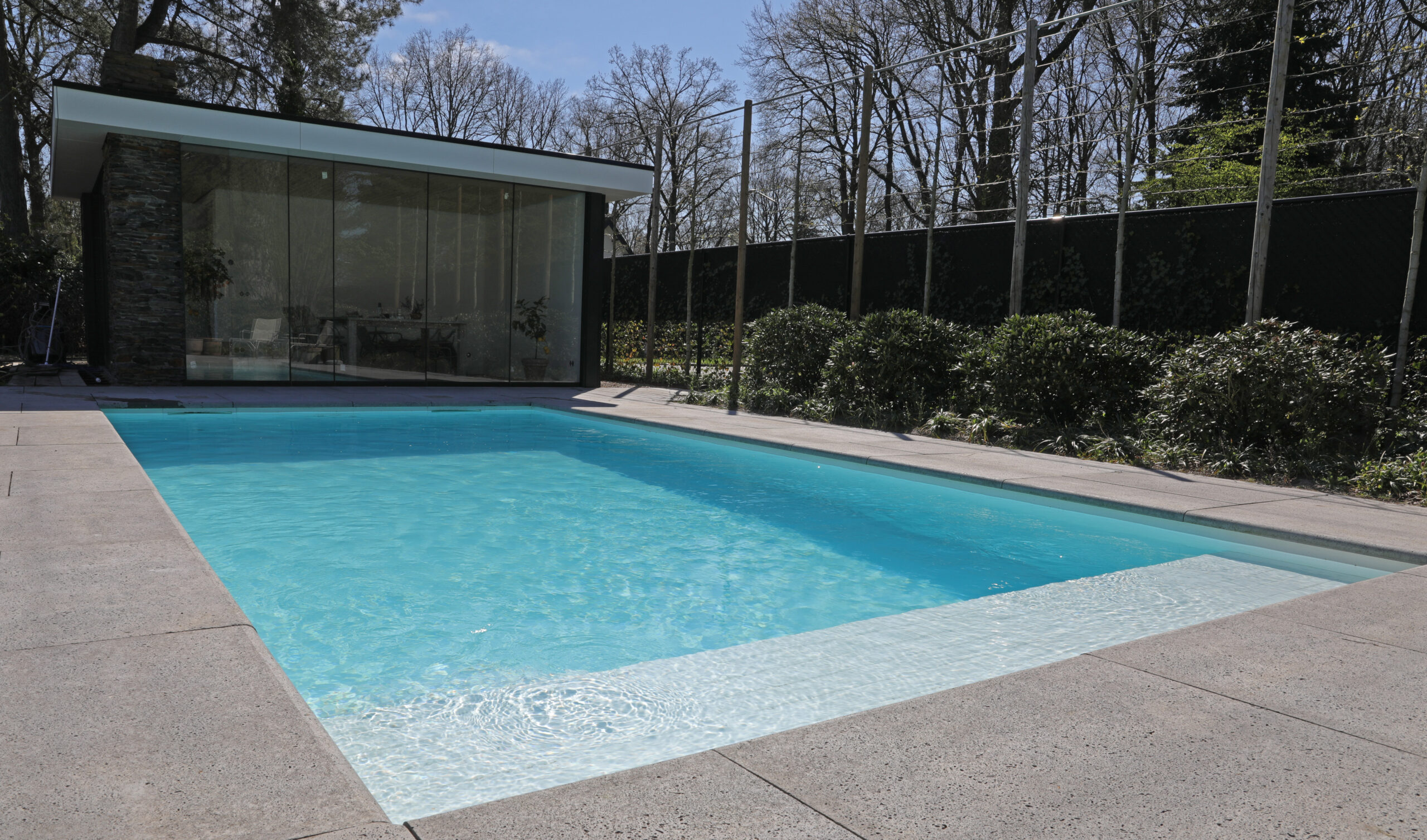Dit zwembad biedt een oase van luxe en ontspanning. Bij dit stijlvolle zwembad is een luxe poolhouse gebouwd.