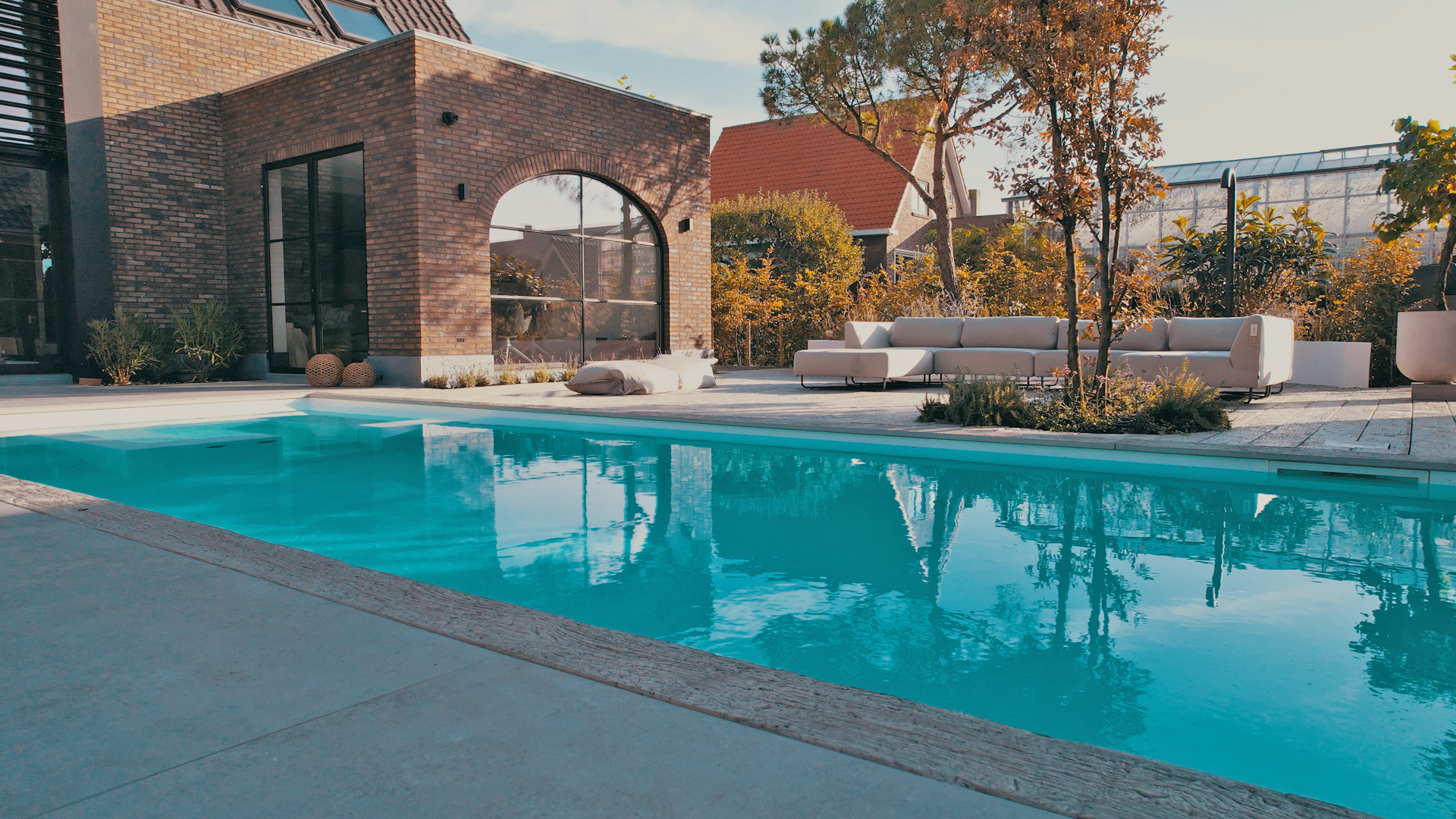 Het zwembad is volledig aangepast aan de luxe uitstraling van de tuin, waardoor het perfect aansluit bij de persoonlijke smaak en stijl van de klant. Dankzij het lange en slanke ontwerp past het zwembad optimaal in de tuin en maakt het optimaal gebruik van de beschikbare ruimte.